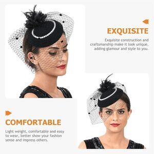 ❤ The hat has a flower and faux pearl decor. Finished with polka dot netting veil