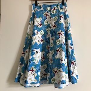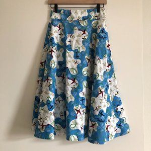 Pinup Couture Doris Skirt in Mary Blair "Bon Voyage" Blue Airplane Print, Small