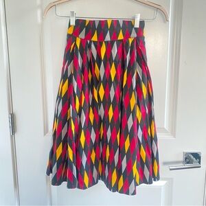 Laura Byrnes California Little Jun Skirt in Red House Harlequin! Named with love for Laura’s youngest daughter, this classic style Little Jun skirt is sure to please. Made out of the highest quality cotton sateen, this skirt features a curved high-waisted fit, box pleating, and a full skirt with elastic in the back of the waist and for ultimate comfort. For the Harry Potter fans; flaunt those Gryffindor colors!