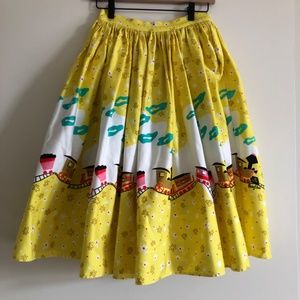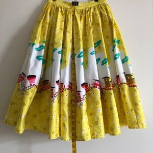 Pinup Couture Jenny Skirt in Mary Blair "Bon Voyage" Yellow Train Print, Small