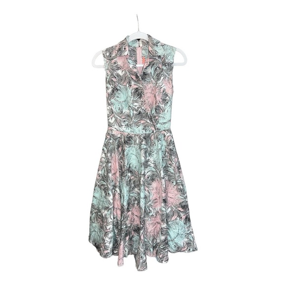 Pinup Couture Pink and Blue Tropical Collared Fit And Flare Dress Size Small CA1