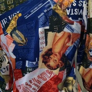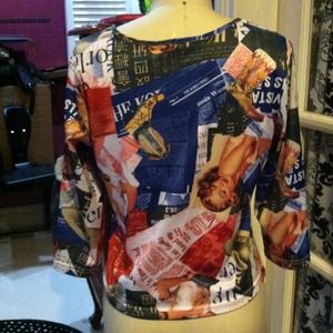 Very cute shirt! Sleeves reach to the elbows. M/L. Stretchy silky fabric. Perfect pinup top!