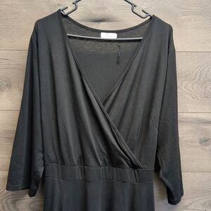 Pinup Fashion Black V Neck Tie Wrapped Dress Women's Plus Size 24W