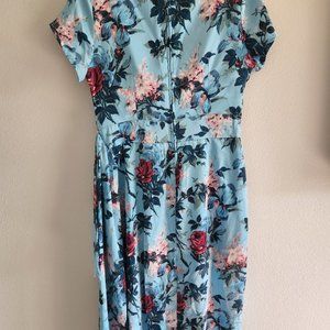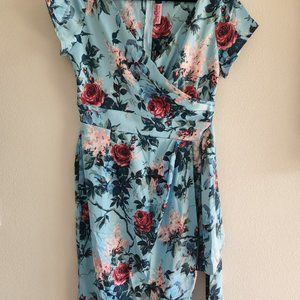 Pinup Girl Couture - Ava Dress Wrap - Blue Floral - Satin - Pinup Girl Couture