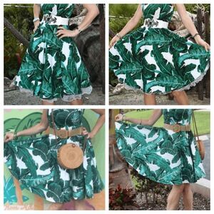 🌴 Pinup Retro 1950s Swing Rockabilly Green Palm Leaves Print Dress SIZE L NEW