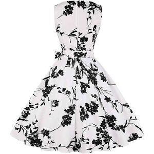Women's Pinup Retro Vintage 1950s 60s Swing Cocktail White & Black Floral Print Rockabilly Dress with Belt