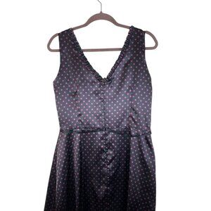 Pinup V-Neck Polka Dot Sleeveless Dress With Ruffle Trim & Waist Tie Size 12