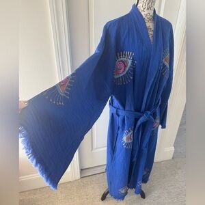 Pinus Evil Eye Kimono Robe – Hand Painted – 100% Cotton – One Size (Fits XS–L) – NWT
