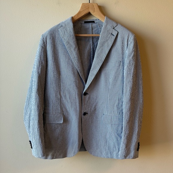 Stylish Seersucker Piombo blazer in great condition. Ideal for versatile wear. Adds sophistication to any outfit.
