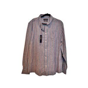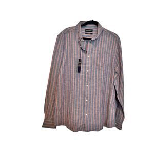 Piombo Men's Cotton Linen Striped Button Down Shirt Long Sleeve Size XL NWT