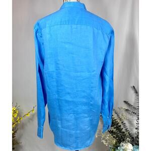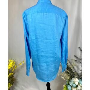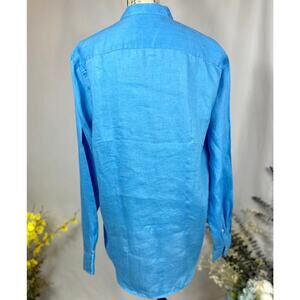 Piombo Pure Linen Long Sleeve Shirt with Mandarin Collar L