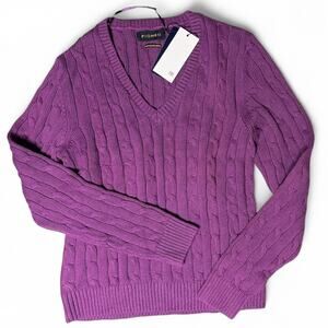 Piombo Purple Cable Knit V-Neck Pullover Sweater size Large