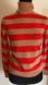 Stylish turtleneck sweater by Piombo. Features bold red and tan stripes. Perfect for cozy wear.