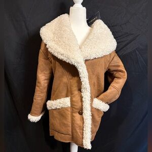 Piombo is a luxury Italian brand brillantly designed by Massimo Piombo. The brand is known for it’s tailoring and high quality designs and fabrics. This shearling women’s coat is no exception. The functional buttons on the sleeves to get maximum coverage on cold days, the button design and the extra long collar for maximum warmth. Stay warm and stylish with the Women's Brown Shearling Coat. Featuring a cozy cream lining, this coat is perfect for chilly days.