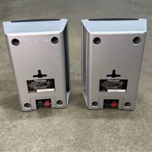 Pair of Pioneer A-D43 front speakers from the S-FCRW240W-S 5.1 home theater system. These compact passive speakers deliver clear sound for front left and right channels in a surround setup. Suitable for replacements or expanding an existing system.