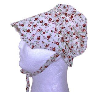 Pioneer Bonnet Old Fashioned Prairie White Red Floral Modest Farmhouse Medium