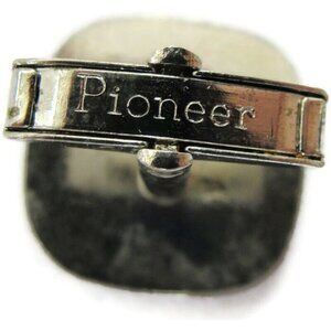 Vintage Pioneer Cufflinks in a silver tone are the perfect accessory for wedding tuxedos. These cufflinks, in their original box, exude a classic charm and elegance.