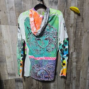 Details: long sleeve, lightweight, all over print, full zip, front pockets, hooded, very unique and rare one of a kind piece!