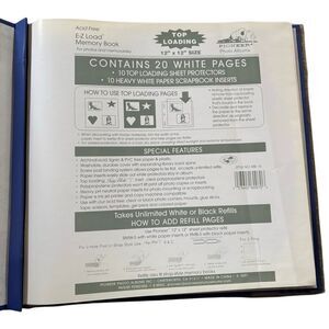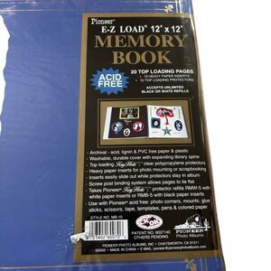 Pioneer E-Z Load 12” x 12” Blue Memory Book. 20 Top Loading Pages. 10 Heavy Paper Inserts, 10 Top Loading Protectors. Acid Free. New in cellophane.