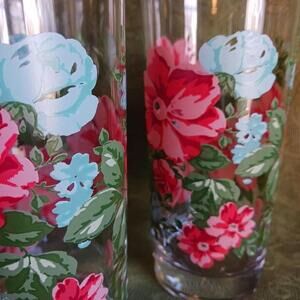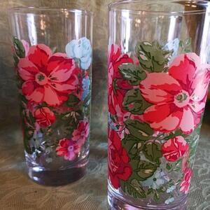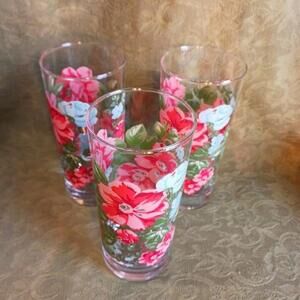 Pioneer Woman 16 oz Drinking Glasses Vintage Floral Set of 3 Red Turquoise