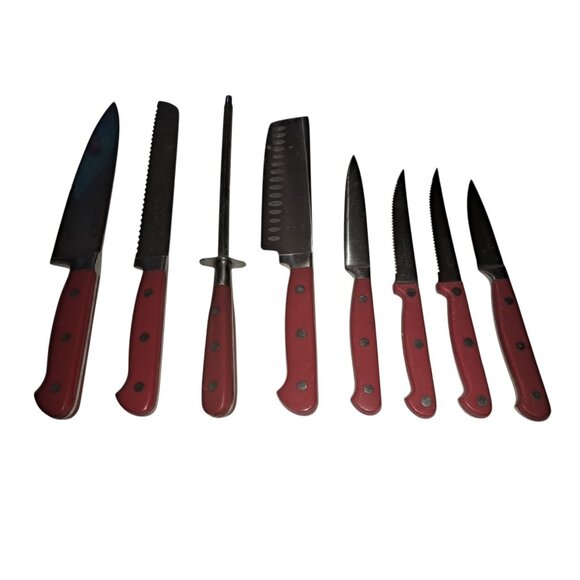 The Pioneer Woman 8 Pc Knife Set Red Handle Stainless Steel Kitchen Farmhouse