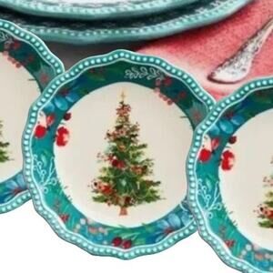 Pioneer Woman Holiday Appetizer BREAD BUTTER PLATE Wishful Winter Ceramic Christmas Tree- NEW Condition Without Price Tags!