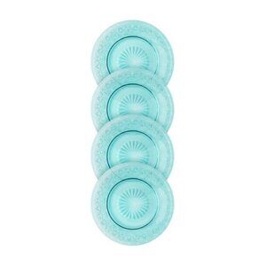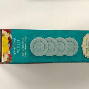 Pioneer Woman Cassie Appetizer Dessert Plates Teal Embossed Glass 4pk 6.35"dia