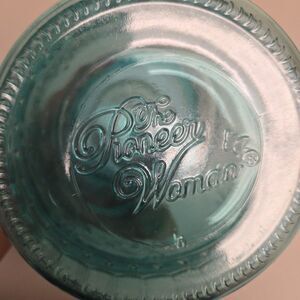 Pioneer Woman Cassie Teal Glass Canister Jar with Lid Country Farmhouse
