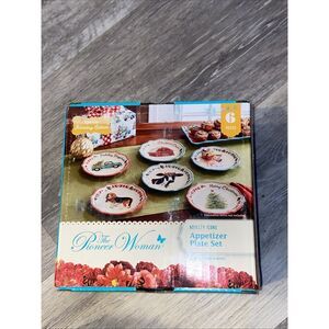 Pioneer Woman Christmas Holiday Appetizer Plate Set 6 Piece New Farmhouse Ranch