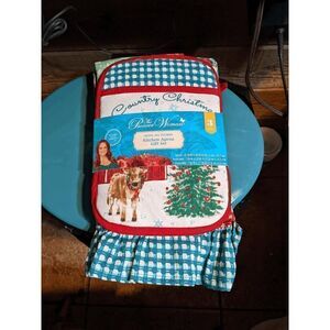 🆕Pioneer Woman Christmas Rose Patchwork Kitchen Apron Gift Set & 4 Pc Towel