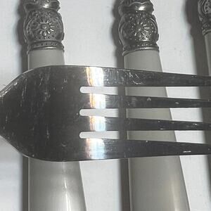 This pattern discontinued Pioneer Woman Cowgirl Lace Stainless Flatware 1 set of 3 forks and 3 table knife knives pearl gray handle