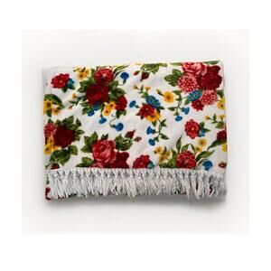 Bright Beautiful colors/ fringe trim - excellent condition floral throw 48x77