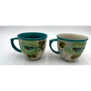 Pioneer Woman Hand-Painted Floral Ceramic Mugs With Teal Interior & Handle