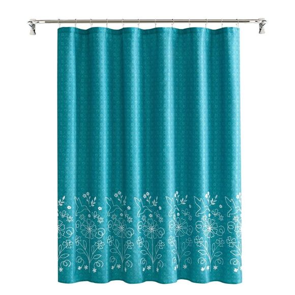 The Pioneer Woman Mazie Teal Blue and White Embroidered Floral Cotton-Rich Shower Curtain, 72" x 72":