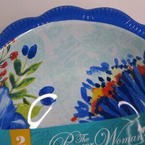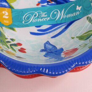 Pioneer Woman Melamine Dip Bowl 2Pc Set Red & Blue Delaney Floral 5.23"dia New