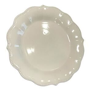 Pioneer Woman Paige Linen Ivory 11" Dinner Plate Ceramic Scalloped Beaded Edge