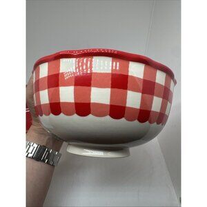 The Pioneer Woman Red Gingham Bowls Set of 2 is a vintage-inspired addition to any kitchen or dining room. Made of ceramic with a scalloped design, these 6.5-inch bowls feature a classic red gingham pattern that adds a touch of charm to your table setting. Perfect for serving salads, side dishes, or even as decorative pieces, these bowls are both functional and stylish, making them a must-have for any home cook or collector of unique dinnerware items. No chips or cracks. EUC