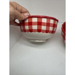 Pioneer Woman Red Gingham Bowls Set Of 2 Vintage Scalloped Ceramic -6.5”