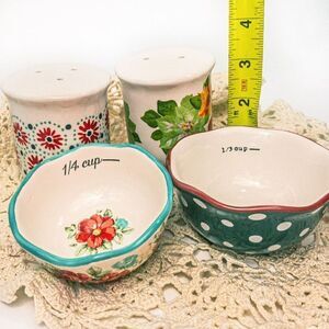 Pioneer Woman Shabby Chic Bundle: Salt & Pepper Shakers with Nesting Cups