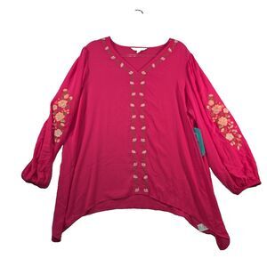 Pioneer Woman Shark Bite Hem Tunic Size XL Pink Peasant Top Embroidered NWT