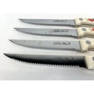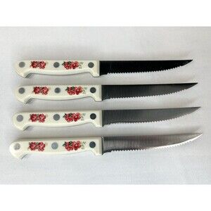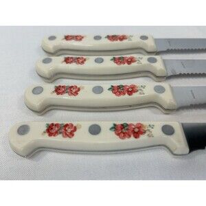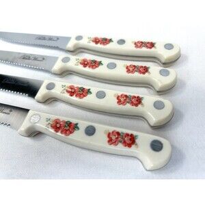 Pioneer Woman Steak Knife Floral White Set 4 Red Flower Serrated