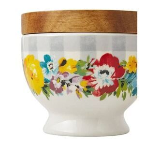 Pioneer Woman™ ~ Stoneware Salt Cellar ~ Acacia Lid ~ SWEET ROMANCE ~ 3.6 x 3.2