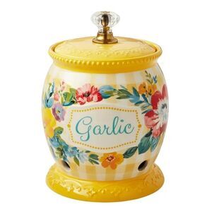 🦋♥️ NIB The Pioneer Woman Sweet Romance, Yellow Gingham, 6.1-inch Ceramic Garlic - Vegetable Keeper with Lid