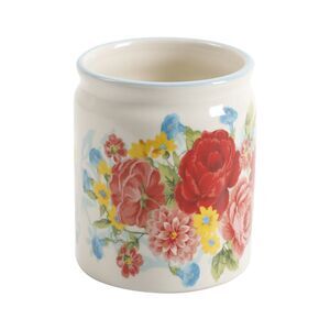 Pioneer Woman Sweet Rose Mini Crock Utensils Set 8-Piece Ceramic Silicone Wood