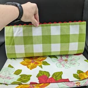 Pioneer Woman Table runner Watercolor Poinsettia Green White Checks 72" Floral