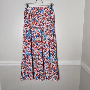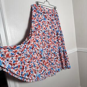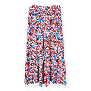 Pioneer Woman Tiered Maxi Skirt Pull On Stretch Elastic Waist XL NWT Red, White & Blue Boho Floral