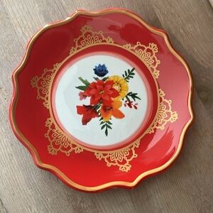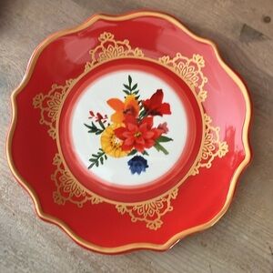 Pioneer Woman “Winter Bouquet “ Floral Red and Gold Dessert Plates Set of 4 NWT