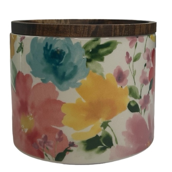 Pioneer Women Floral Kitchen Storage Canister Blue Stoneware 5" Engraved