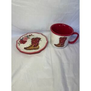 Pioneer woman Cowboy Boot Christmas mug and plate set