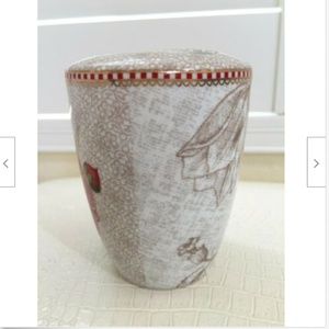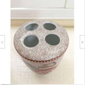 Fine porcelain toothbrush holder, stunning detail depicts the Spring to Life theme accent with flowers, gold detailed.